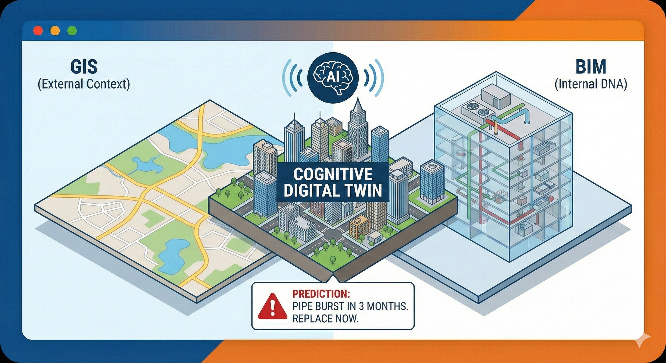 Level 3 (Predictive/Cognitive): AI models that show what will happen. (e.g., “Based on soil acidity and pipe age, this pipe will burst in 3 months. Replace it now.”).
